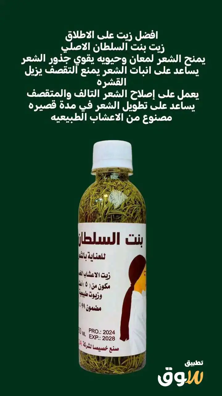 توضع  خلطة زيت بنت السلطان عل فروة الرأس ليلاً  وتغسله الصباحً بلشامبو  يستخدم بين يوم ويوم.