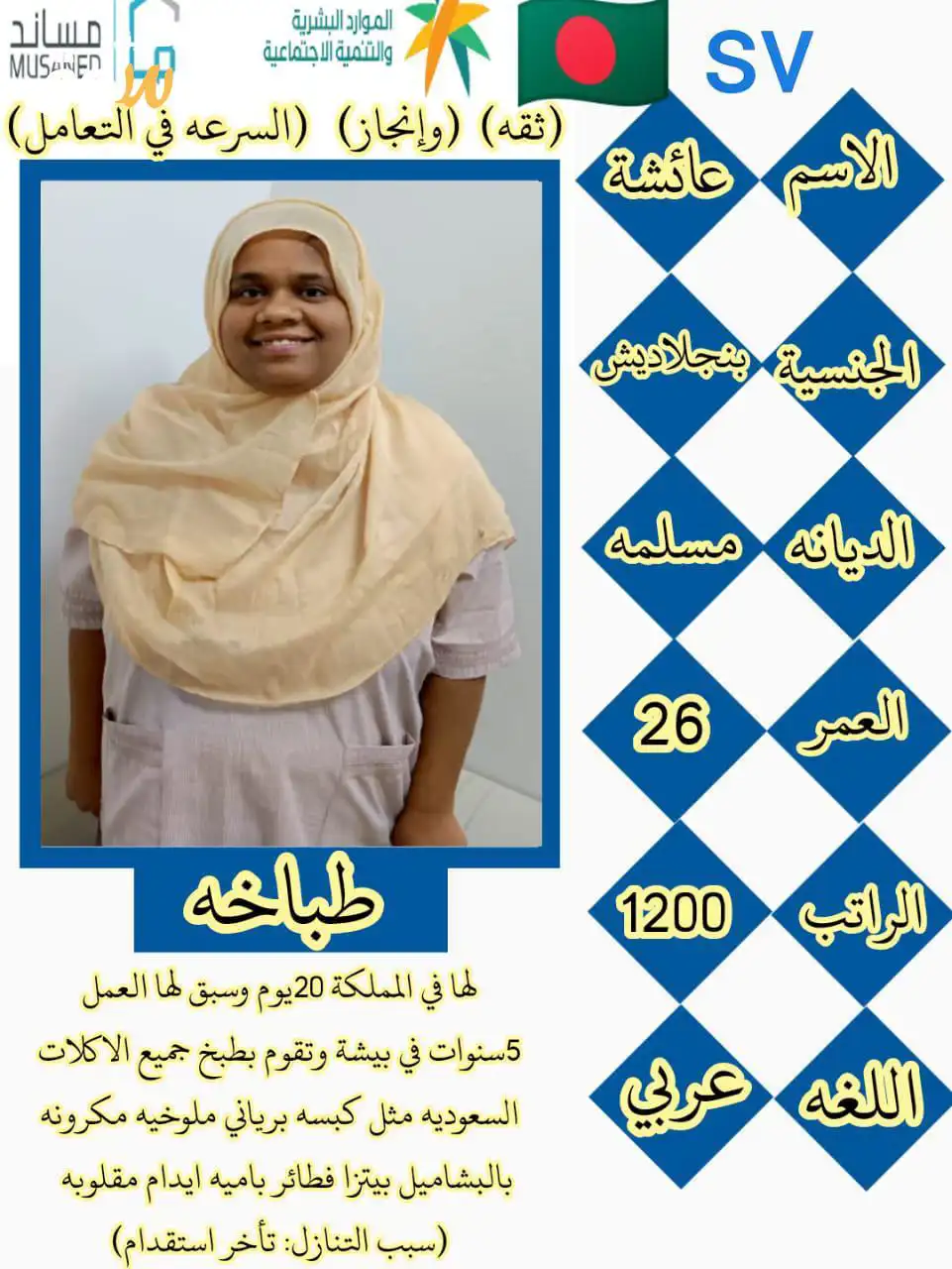 مطلوب ويوجد عاملات منزليه للتنازل من جميع الجنسيات على درايه بأعمال المنزل من طبخ وتنظيف وترتيب المنزل وغسيل وكي الملابس ورعاية الأطفال وكبار السن متاح فترة تجربه قبل نقل الكفالة ومتاح خدمة توصيل واستلام العاملات من والي جميع أنحاء المملكة حسب رغبت العميل للتواصل واتس 0501187048