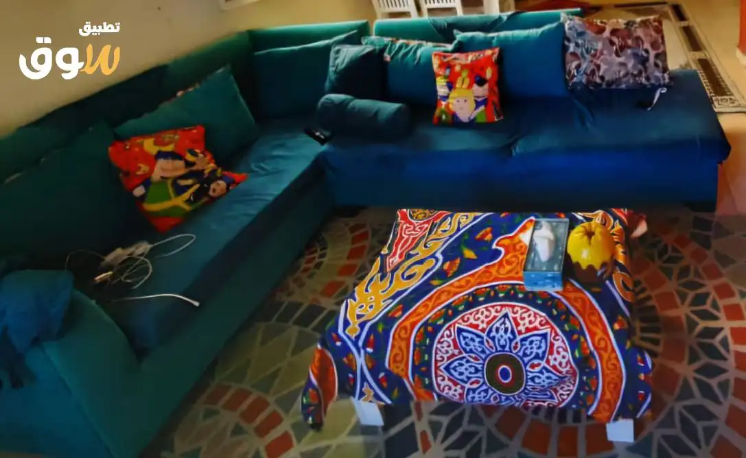 ركنه خشب زان عموله وقماش قطيفه شانيل من محلات احمد شطا مقاسها ٢في ٣ حالتها ممتاااازه