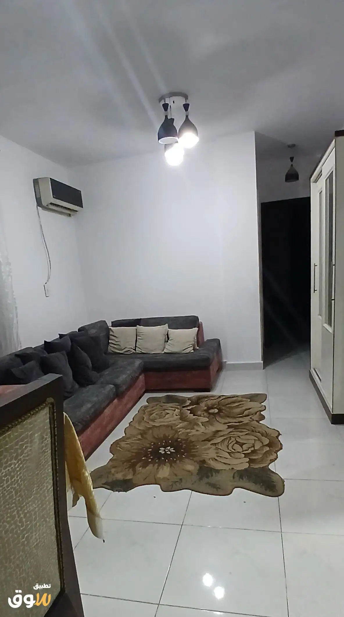 الشقة: غرفتين، حمام، مطبخ مجهز، ريسبشن. دور خامس (أسنانسيران)، وصالة مكيفة.