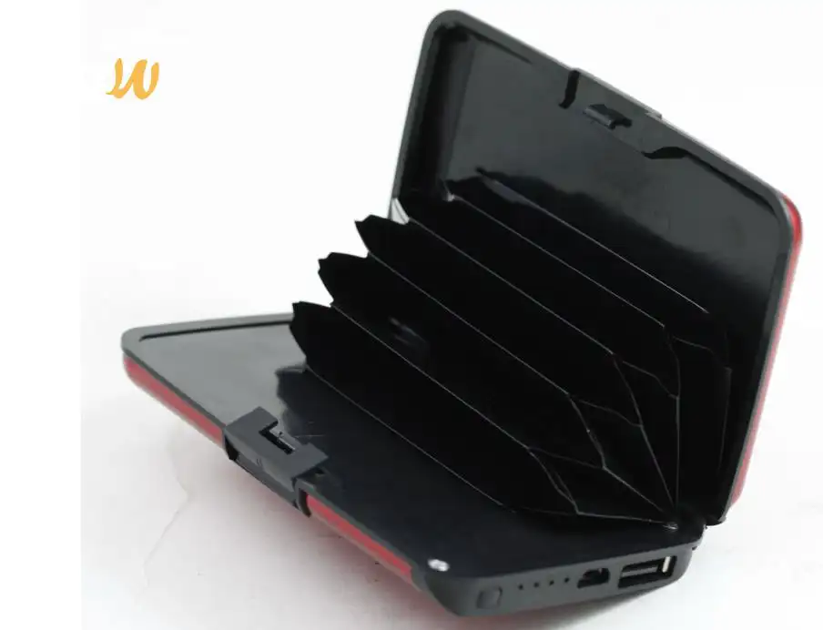 2 في 1 باور بانك ومحفظة قابلة لإعادة الشحن - تحمل ما يصل إلى 30 بطاقة - Wallet Deluxe Portable Power Bank و Credit Card Case - يحمل طاقة كافية لشحن ما يصل إلى هاتفين ذكيين بالكامل. - تصميم الأكورديون ينظم البطاقات والنقود - الغلاف الأنيق والمتين مصنوع من الألومنيوم - متوافق مع جميع الهواتف الذكية بما في ذلك Samsung و iPhone - لا يقتصر على شحن الهواتف فحسب ، بل يمكنه أيضًا شحن الأجهزة اللوحية والكاميرات ومشغلات MP3 وأنظمة الألعاب المحمولة وأي جهاز آخر يمكن شحنه عبر مخرج USB قياسي - إن Charge Wallet أمر لا بد منه لأي شخص يحتاج إلى القليل من الطاقة الإضافية طوال اليوم دون الحاجة إلى ربطه بمأخذ الحائط - ضوء مؤشر المحفظة هذا يضيء تمامًا عندما يكون المنتج مشحونة بالكامل؛ وقت الشحن: 4-6 ساعات - الحجم: 4.2 × 2.75 × 0.75 بوصة - البطارية 5000 ملي امبير - اللون عشوائي