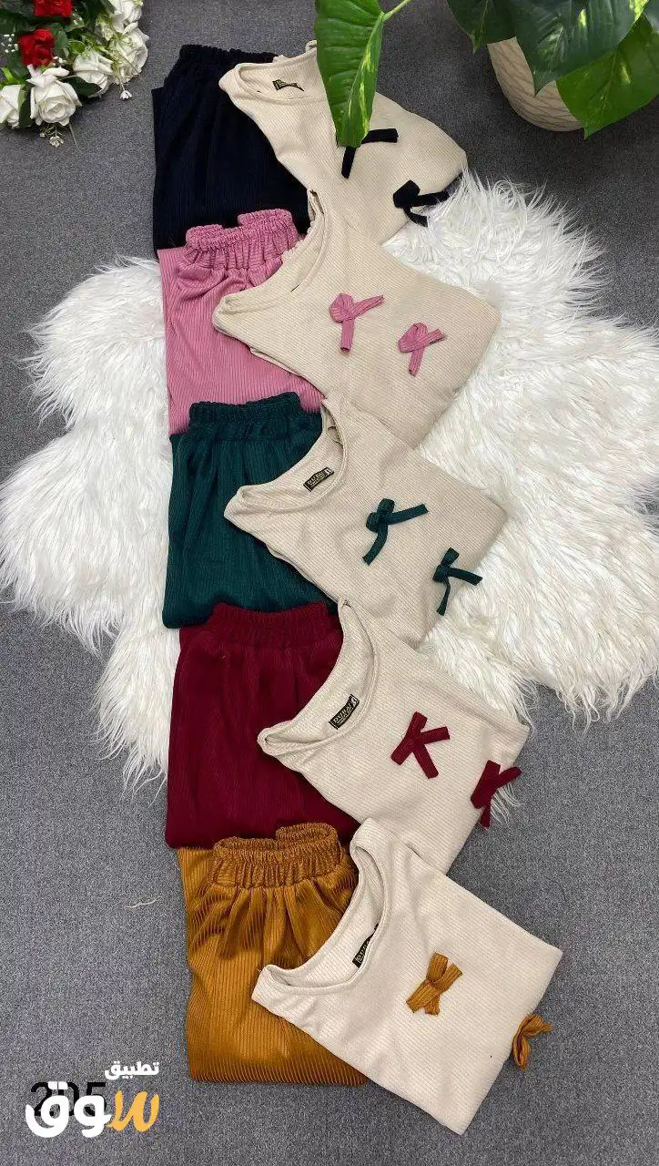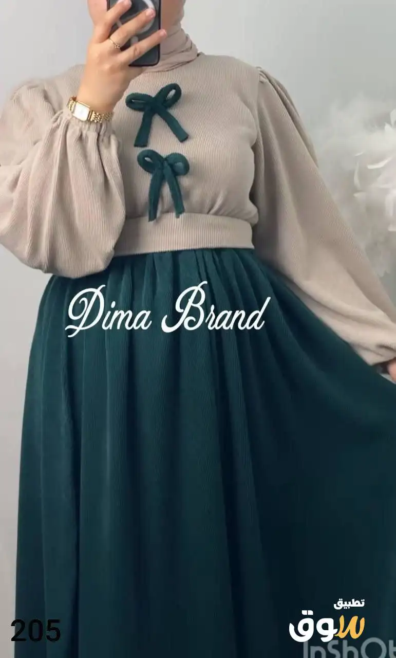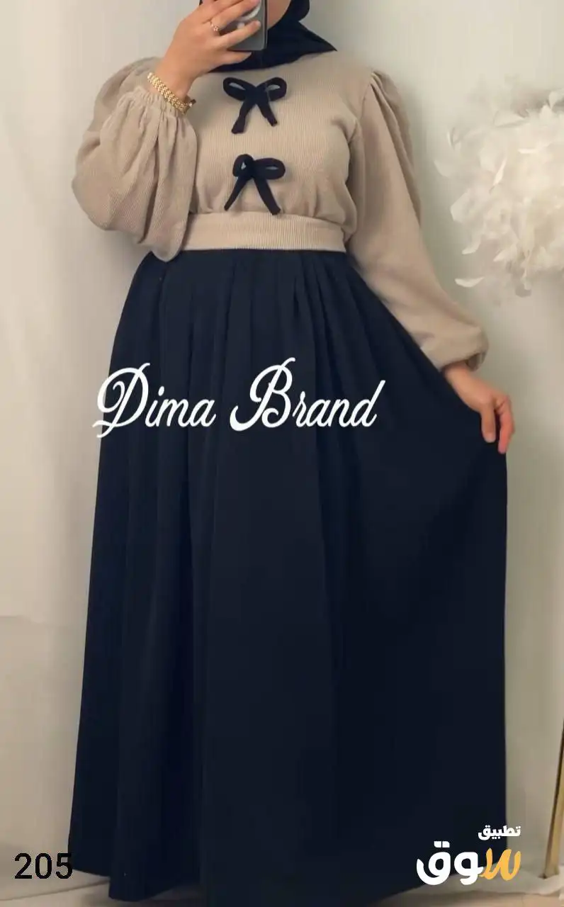 فستان قطعتين توينز جيب وبلوزه استك على الكمر ريب مضلع عالي الجوده تلبيس ل 85