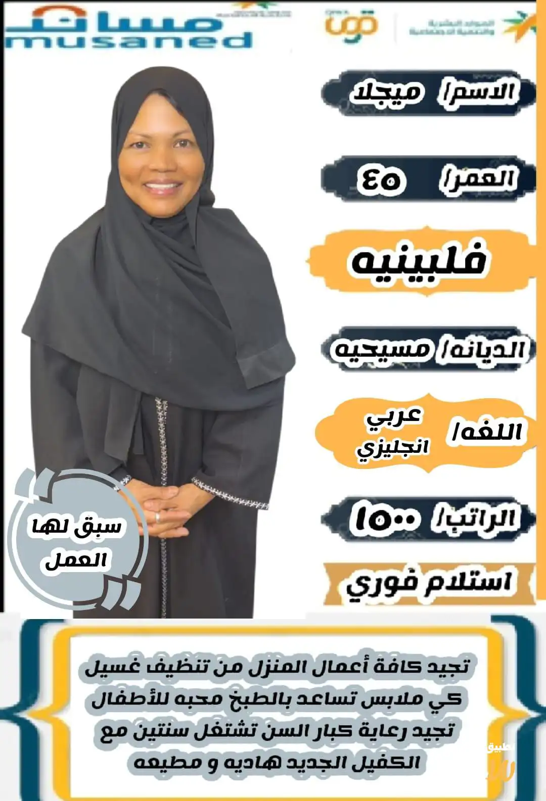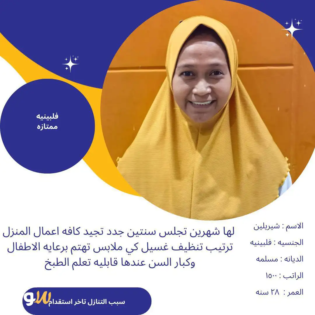 متوفر عماله منزليه وطباخات ومرافقين لكبار السن وعاملات نظافه ومربيات اطفال وكوافيرات وسائقين ومتاح التجربه لكل أنحاء المملكه والتجربة خير برهان 🇸🇦🇸🇦