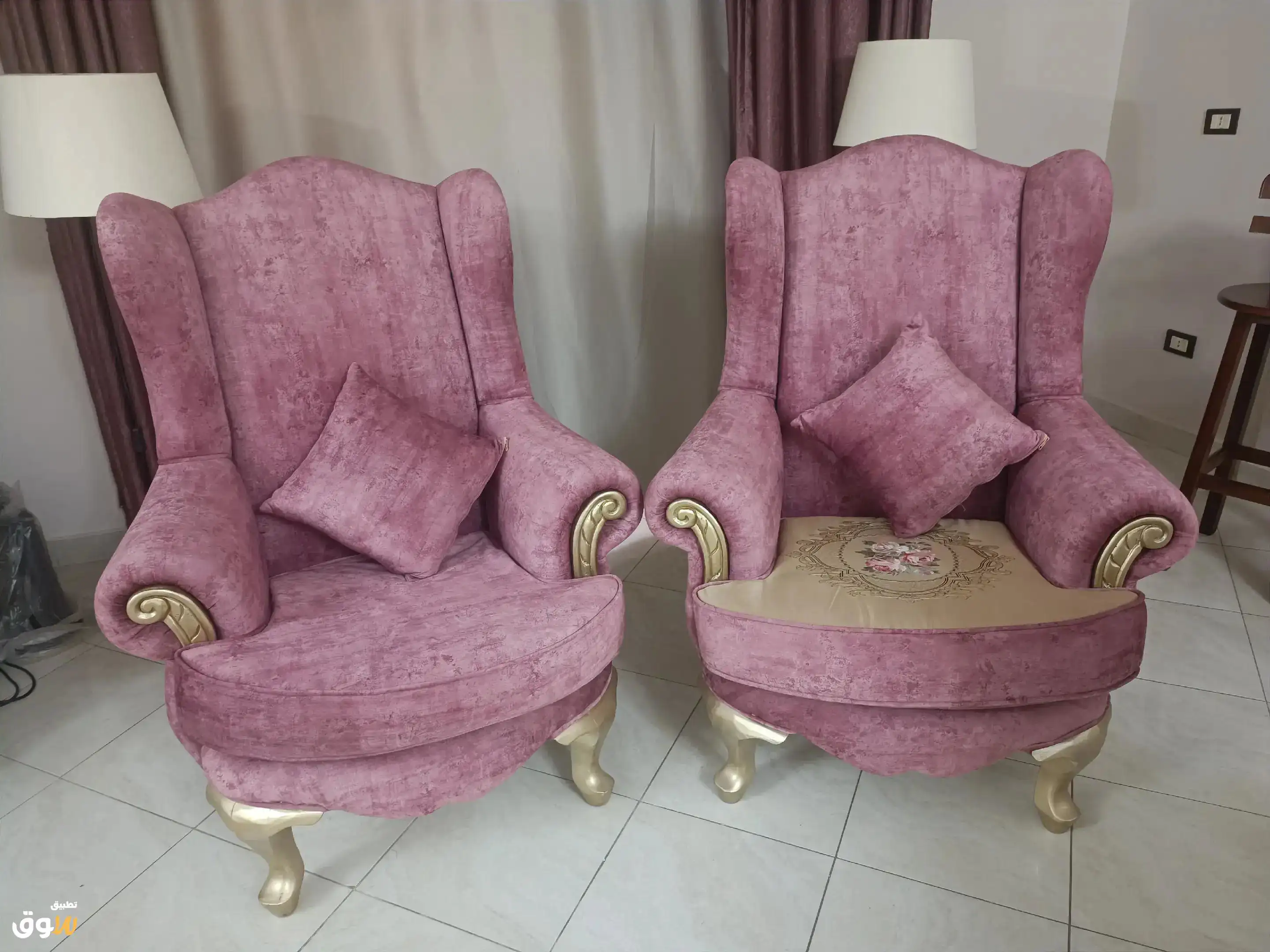عفش عروسه شهرين كرسيين جانبيين مغلفين المكان المريوطيه هرم العروبه شارع مهران