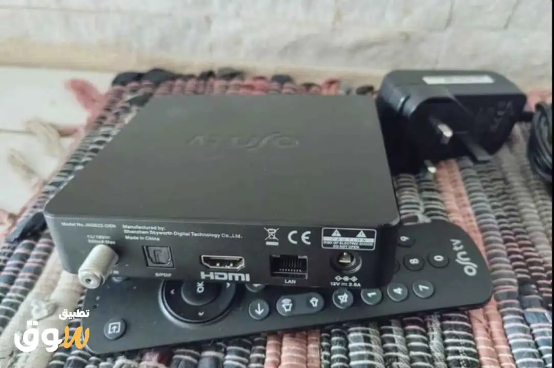 مع كامل أغراضه: ريموت + سلك الكهرباء + ريسيڤر + سلك HDMI