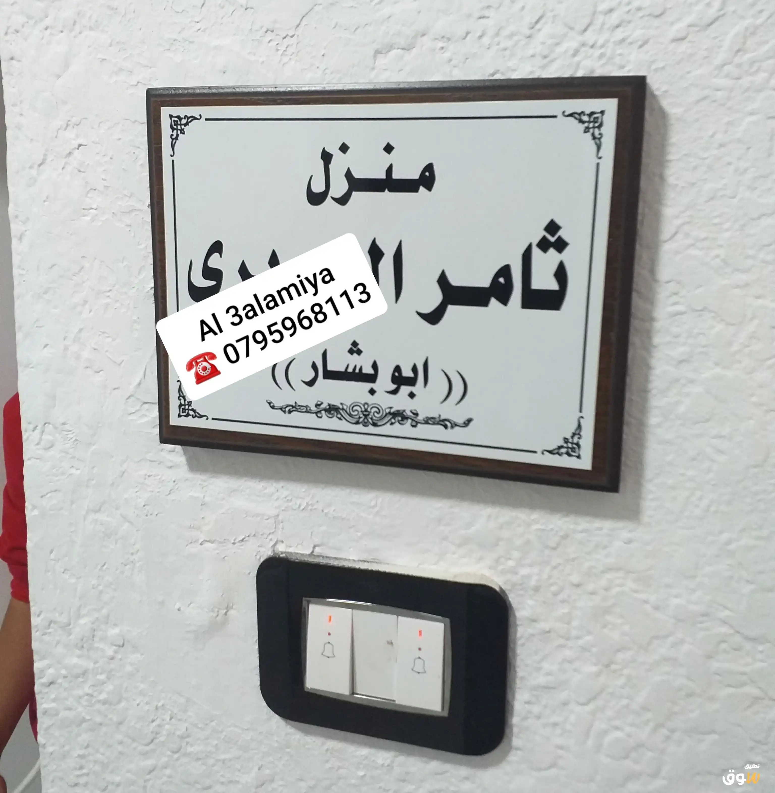 تفاصيل الإعلاناجدد الموديلات من لوحات الاسم المنزلية والمكتبية وأرقام شقق لطلب (( 0795968113 )) واتساب لأخذ التفاصيل