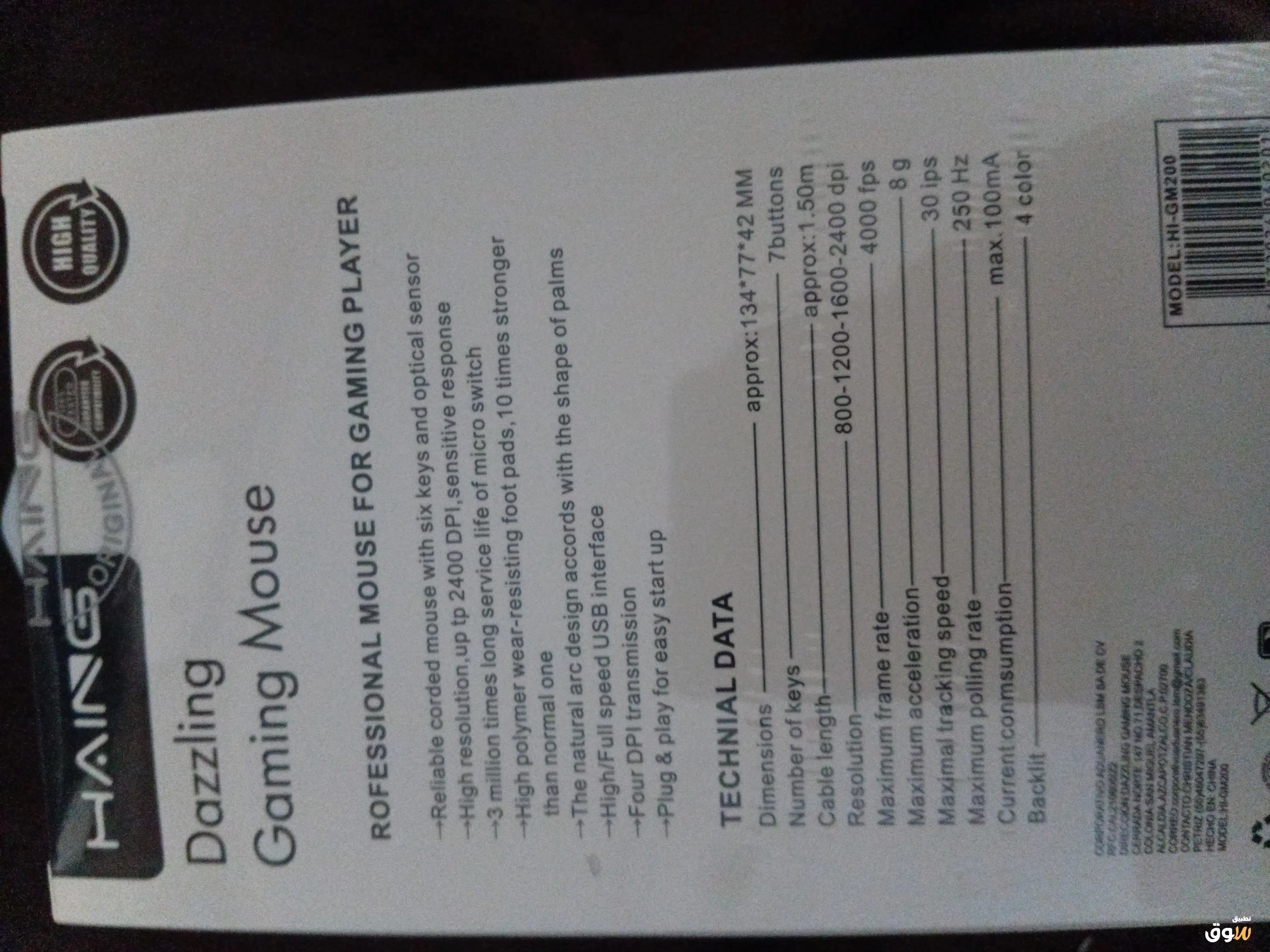 ماوس جيمينج ذا اضاءة يحتوي على 4 الوان و 7 ازراز و بمواصفات جيدة. في ضاحية الرشيد