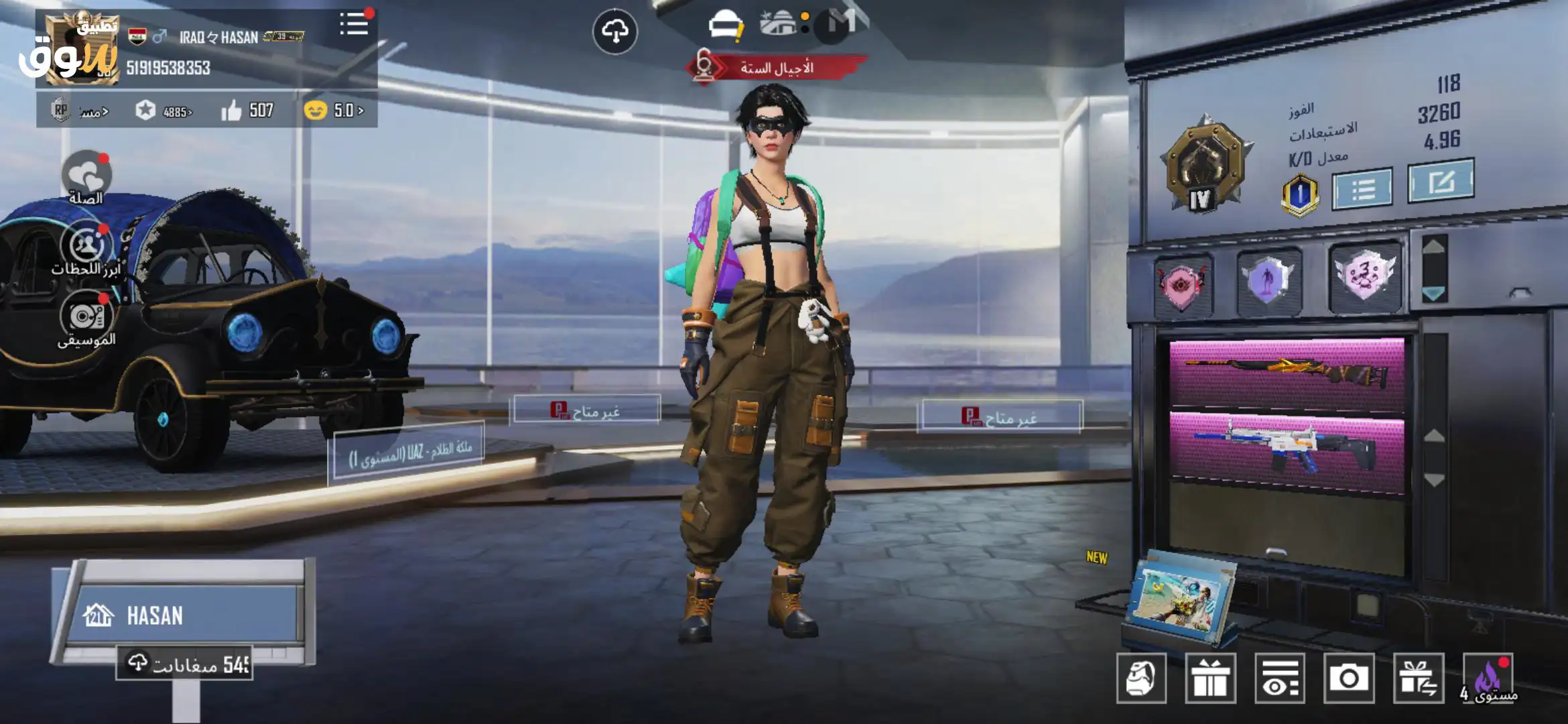 انا اريد بيع هذا الحساب بسعر 35,000 الف دينار عراقي وقابل للتفاوض الحساب مملوك لي فيه بدلات حقا سوف تعجبك (اسطوريا) جنط، ملابس، اسلحة متطورة الاسلحة توجد منها 10 اسلحة قابلة للتطوير وسيارات ايضا مثل الداسيا والجيب.