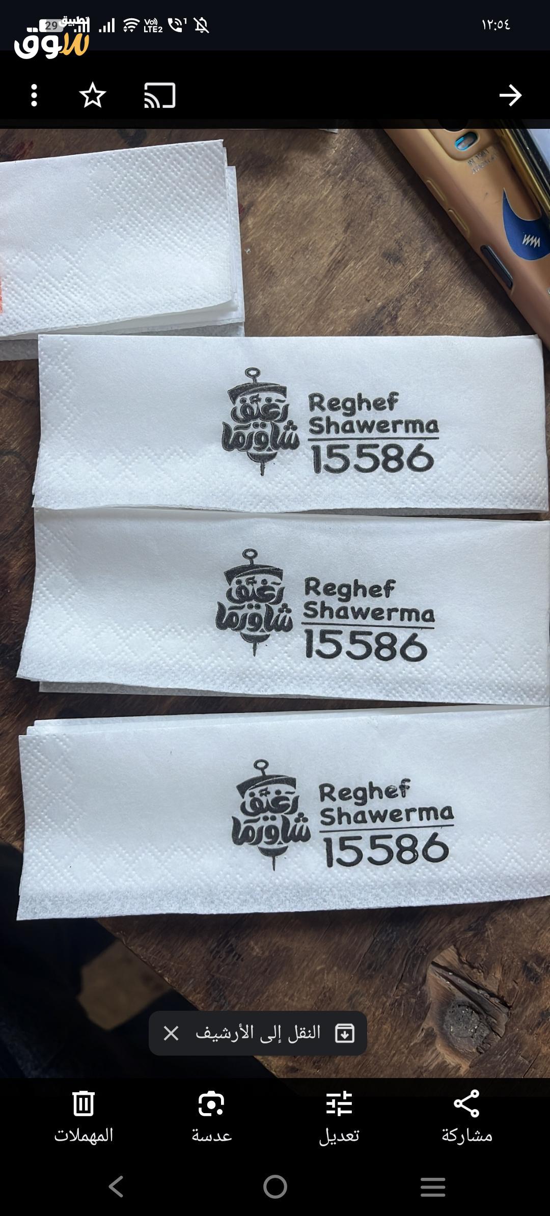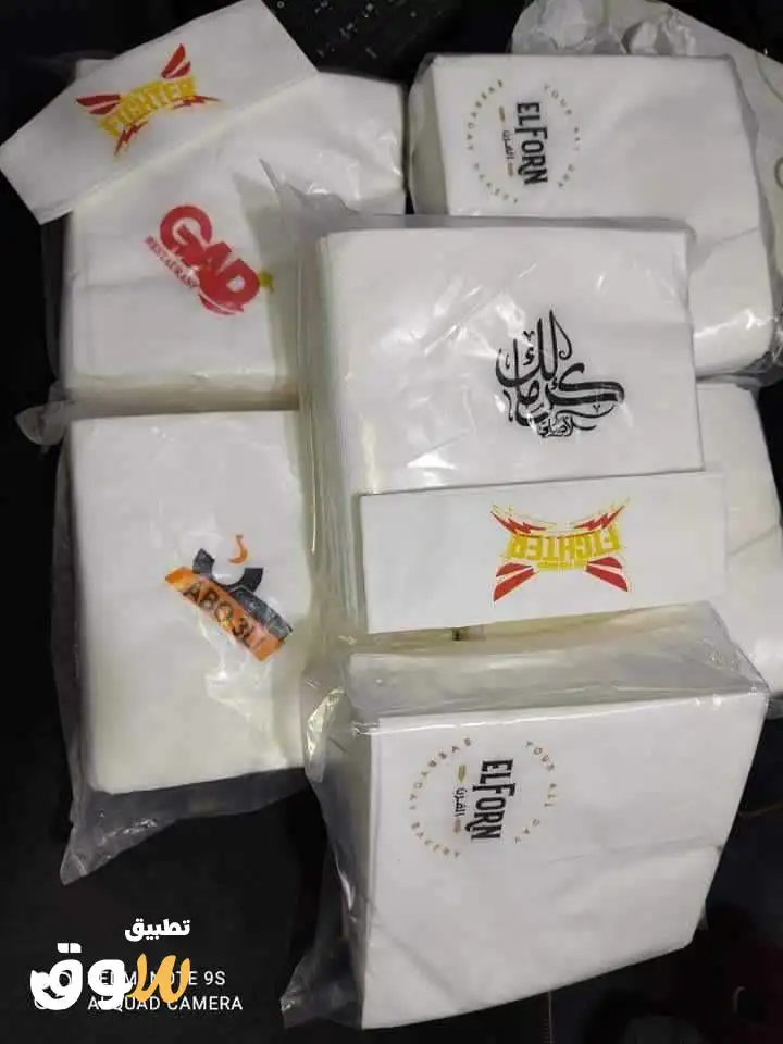 منديل مطبوعه بل شعار كل اللي عليك ارسال اسم المطعم . الفندق ..........