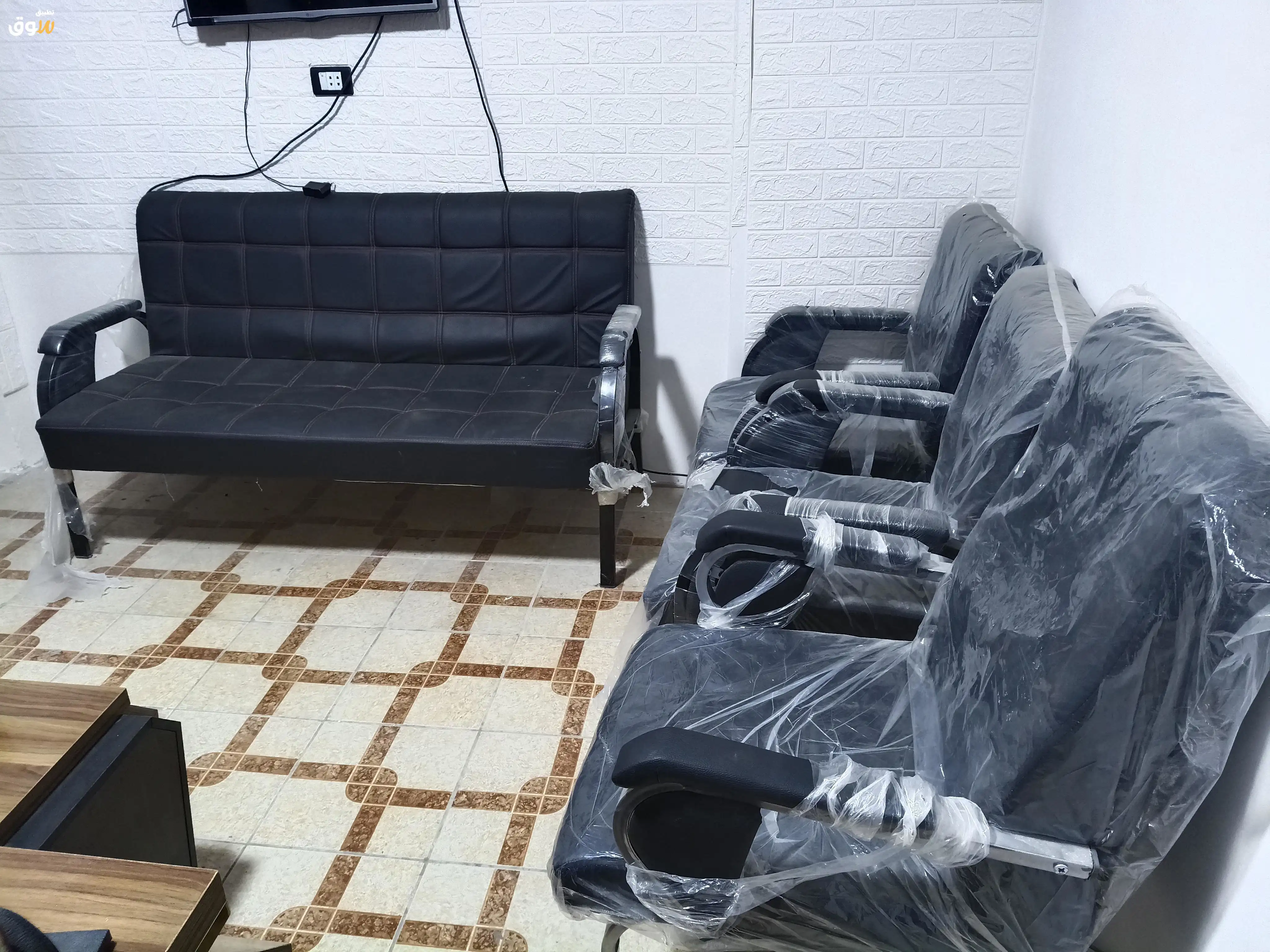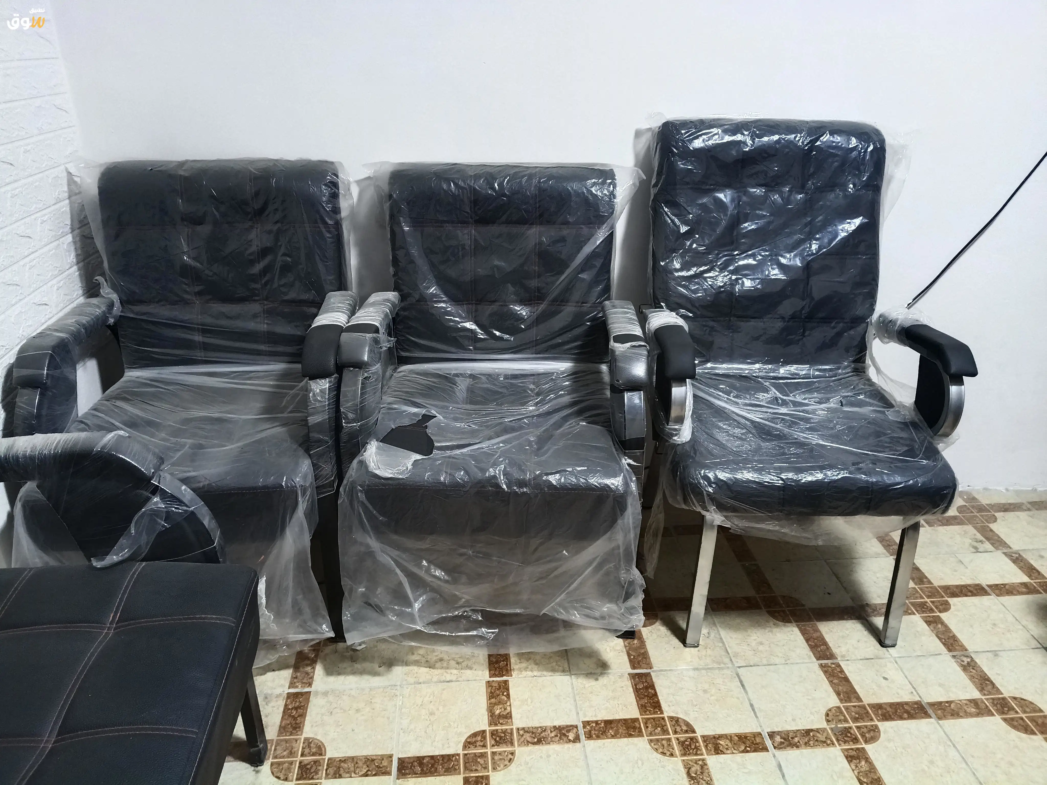 مكتب استعمال شهر مكون من مكتب دهبى وكرسي مكتب وكنبه جلد اسود و٤ كراسى جلد اسود ومكتبه للملفات ت/ 01017413033 للتواصل